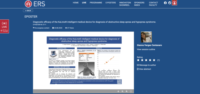 En el “ERS International Congress 2020”, que en esta edición se está celebrando en formato virtual, se acaban de publicar dos ponencias sobre el nuevo dispositivo para el diagnóstico y tratamiento de la apnea del sueño denominado kalinix, desarrollado por Torytrans y apoyado por CDTI.