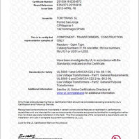 It covers the specific, adopted manufacturing of inductances and transformers of the Torytrans Series U- Isolation System UL-CSA: